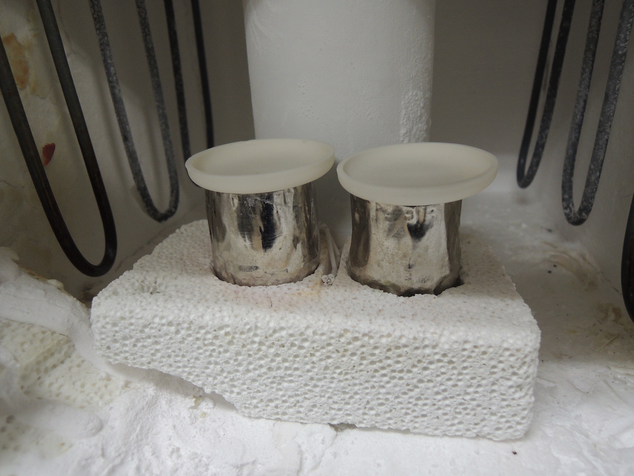 ガラス材料を1600℃で真空溶融したのち,取り出して空冷している様子です.