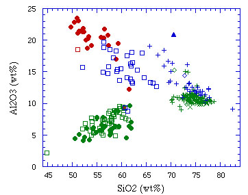 斑晶中のメルト含有物(ガラス)の化学組成