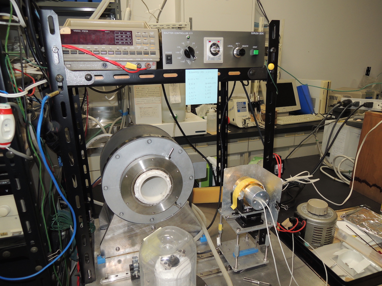 初代は予算が無かったため,有り合わせの部品だけで組み立てました.加熱炉は最高500℃で制約があり,真空フランジの設計も悪く,真空度がなかなか上がりませんでした.そこで上記の二代目を設計することになりました