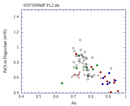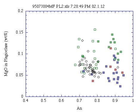 カンラン石,輝石斑晶に包有される斜長石のAn-MgO量†