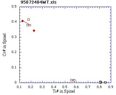 スピネルのCr#-Ti#量