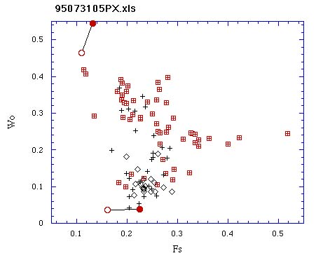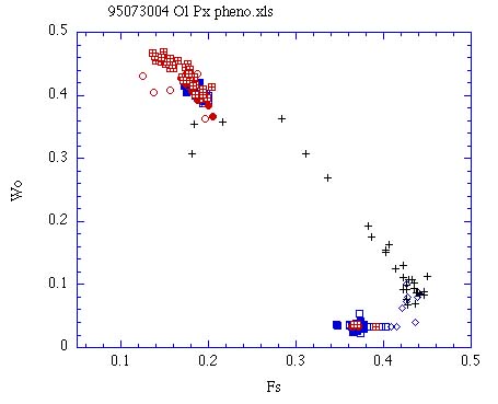 鬼又溶岩(95073105)の輝石のFs-Wo量†