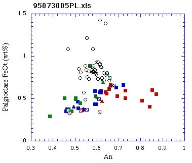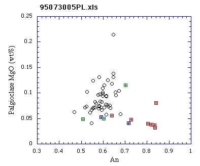 輝石,磁鉄鉱斑晶に包有される斜長石のAn-MgO量†