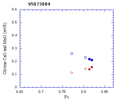 カンラン石斑晶のCaO-Fo, MnO-Fo量