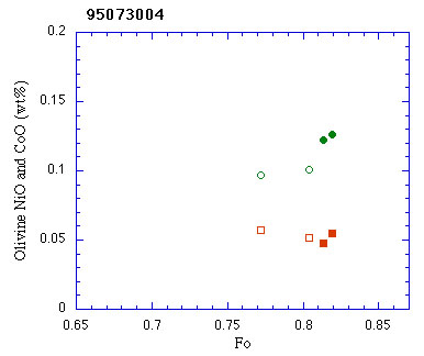 カンラン石斑晶のNiO-Fo, CoO-Fo量