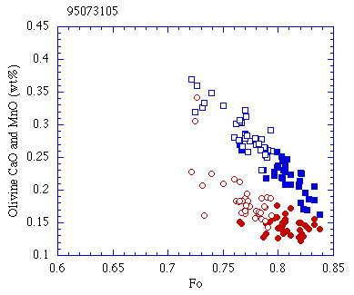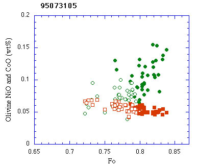 8.3vol%含まれる.クロムスピネルを包有しピジョン輝石の反応縁を有する. クロムスピネルに附随してAl-rich単斜輝石,斜長石を包有することもあるが, 全体としてスピネル以外の含有物の数は少ない.ガラス含有物は見られない.