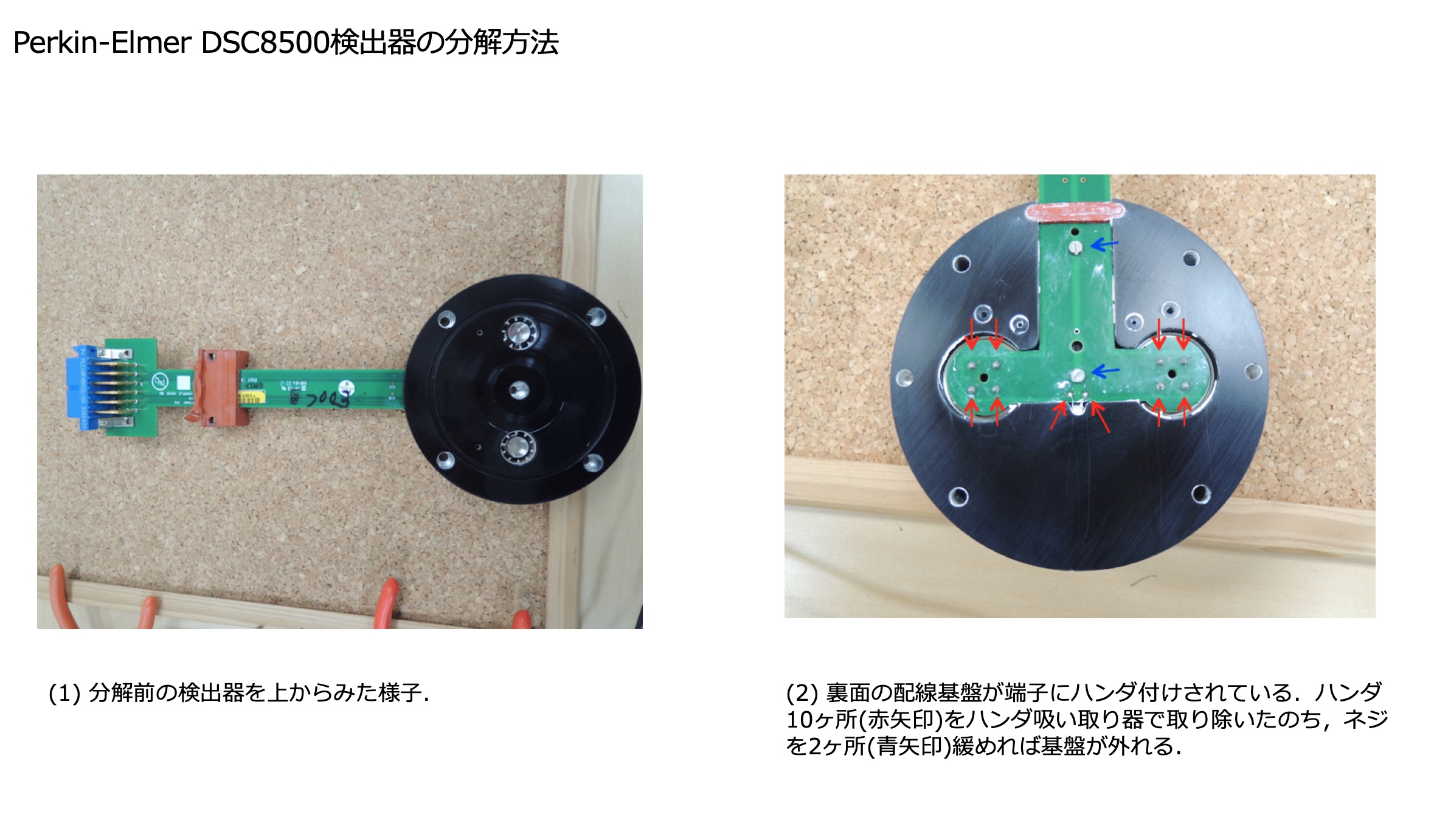 Perkin-Elmerの入力補償型検出器はDSC装置によらず基本構造が同じなので,昔のDSC7の検出器をDSC8500などの比較的新しい装置に組み込むことができます(逆も可). ここではDSC8500の検出器の分解方法をまとめました.