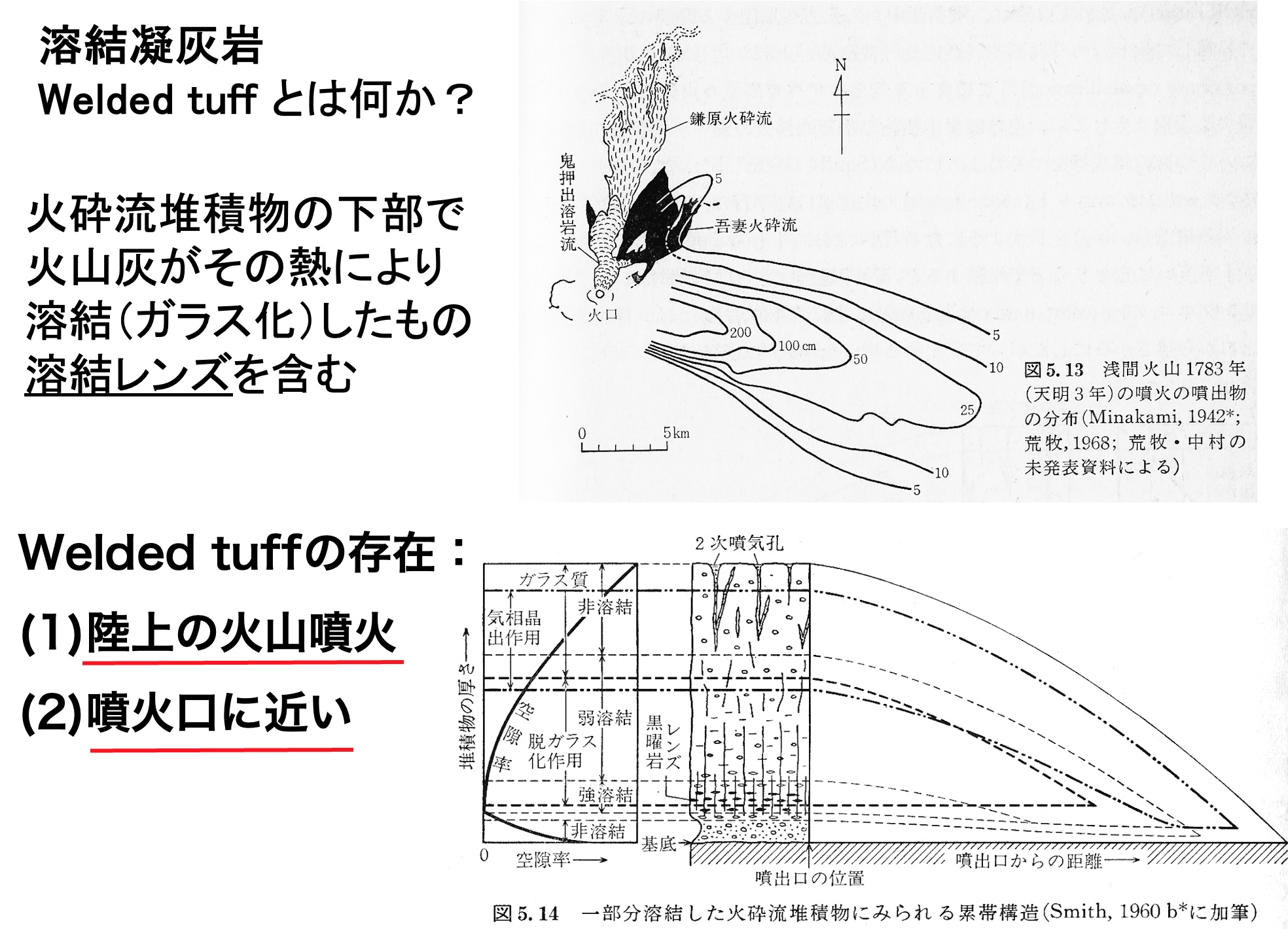 Welded Tuffの存在を認めると、そこが 火山の噴火口付近 であり、かつ 陸上火山