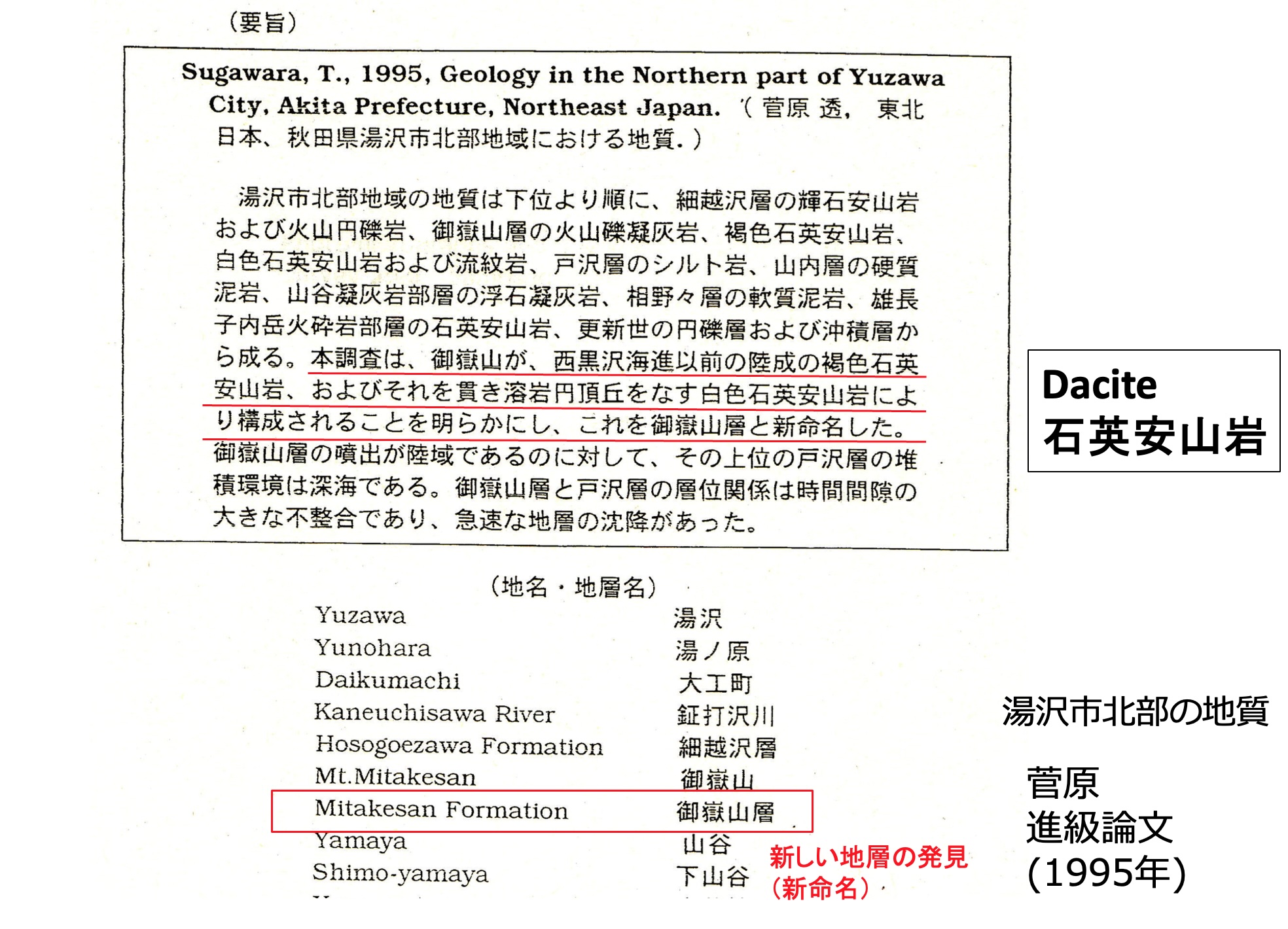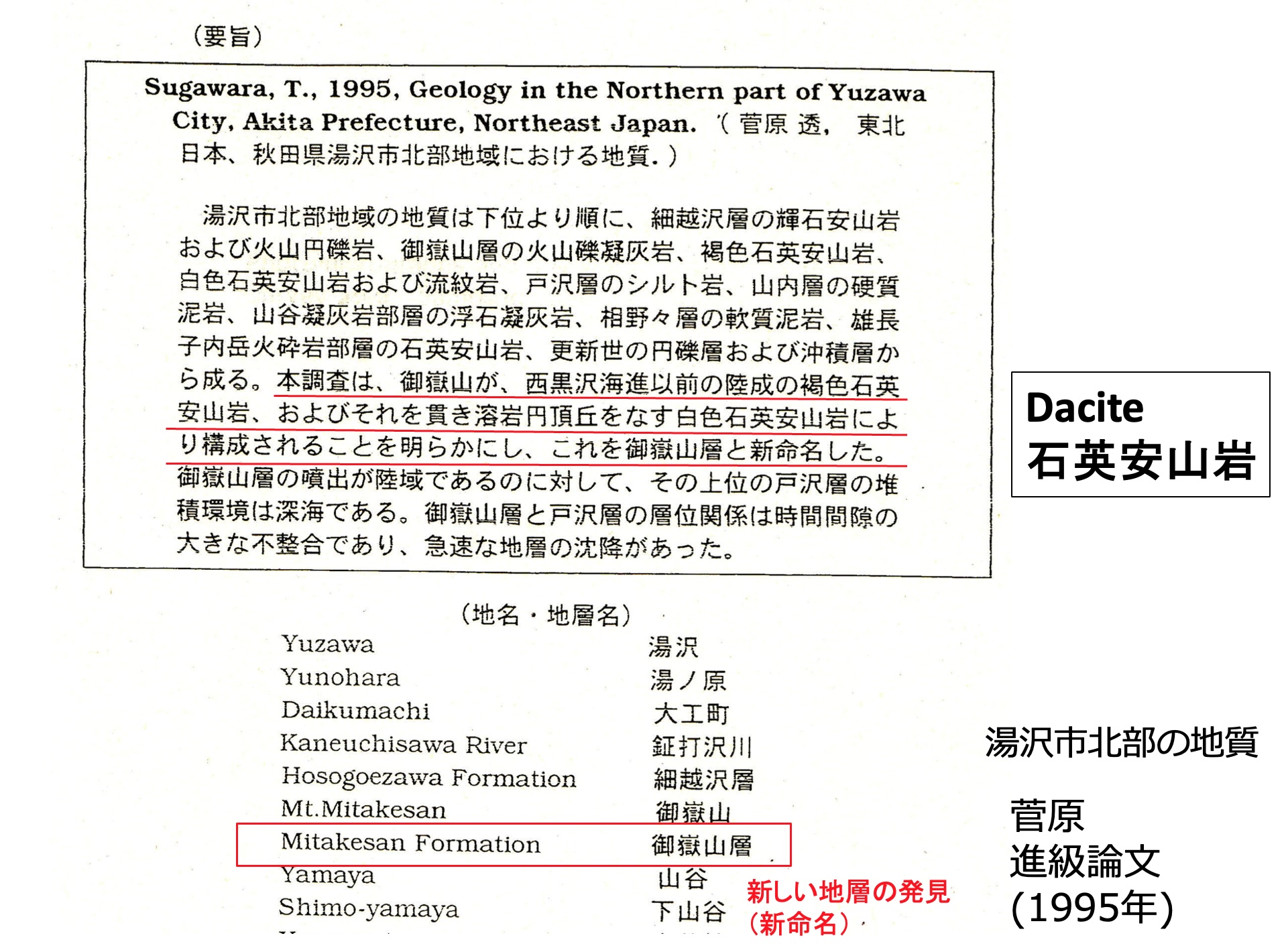 新しい地層ということで、私はこれを御嶽山層 と新命名することにしました。