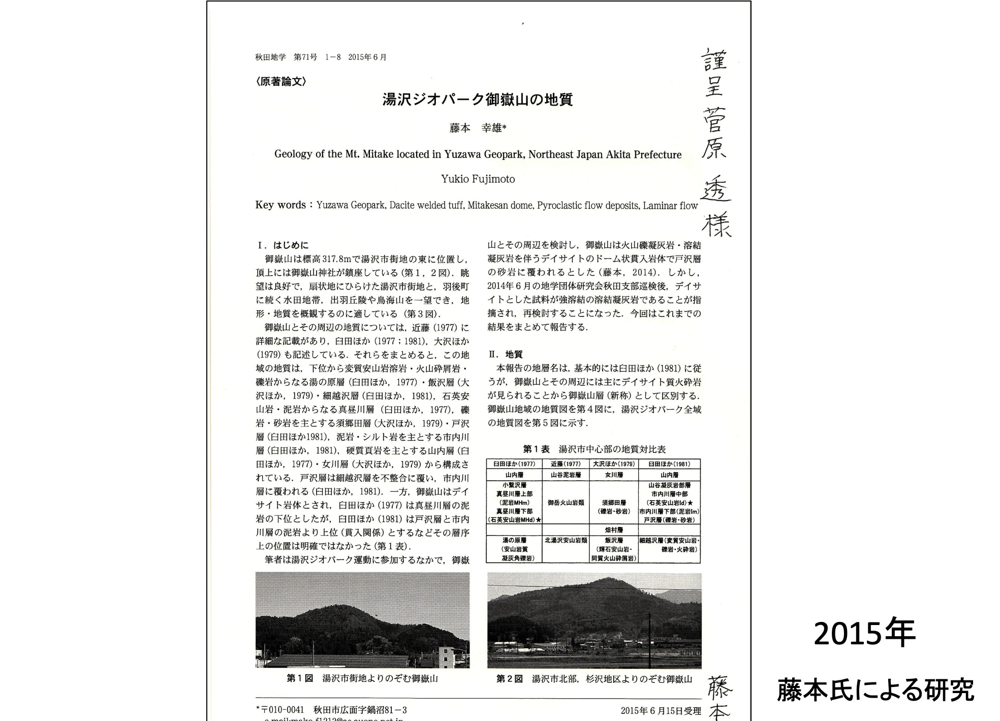 進級論文から20年経過したある日、地質学者の藤本幸雄氏が