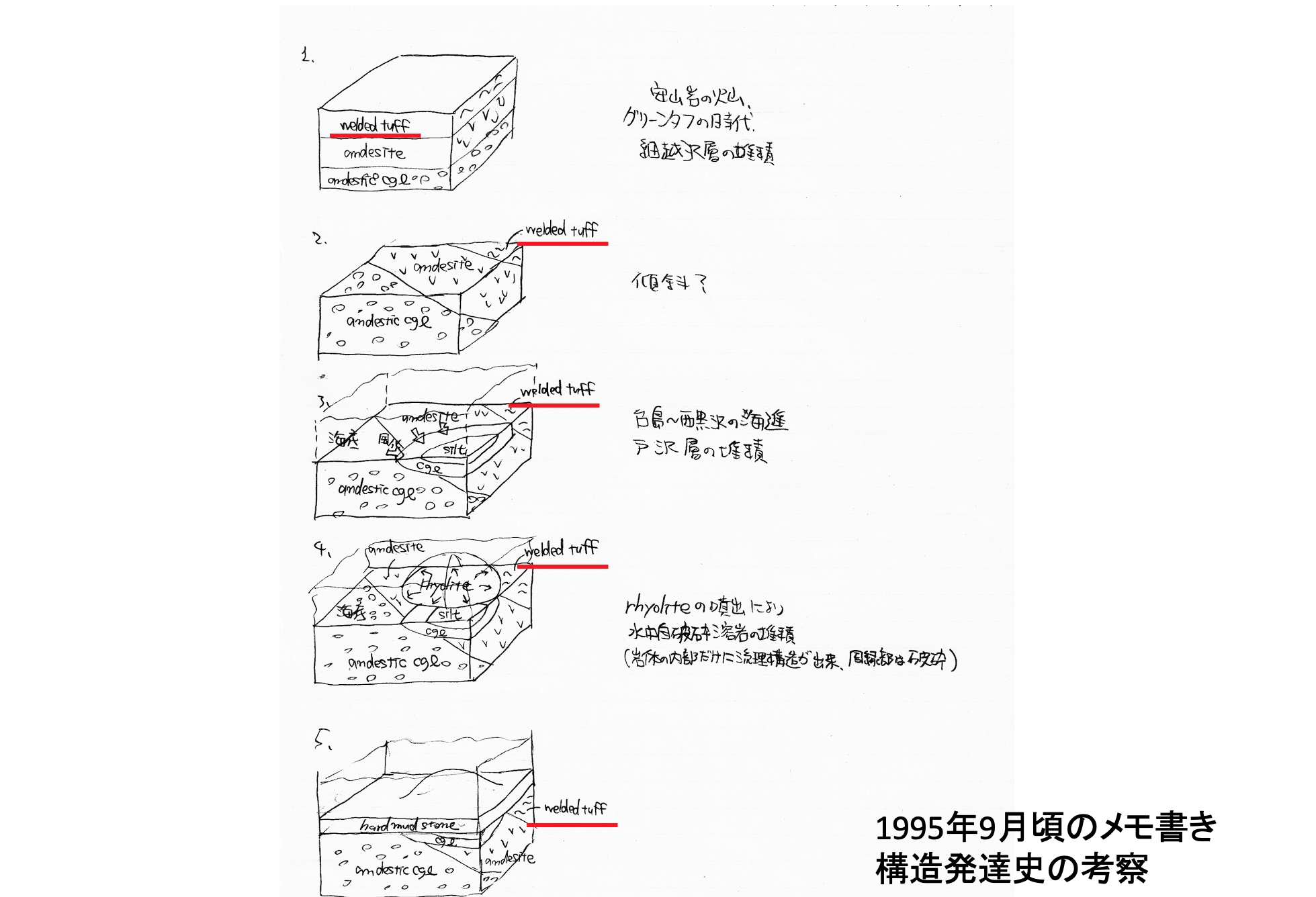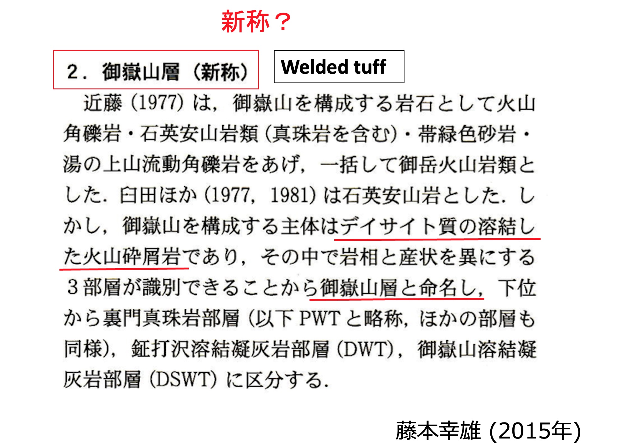 はっきりと Welded Tuff と書いているのがわかります(上図)。