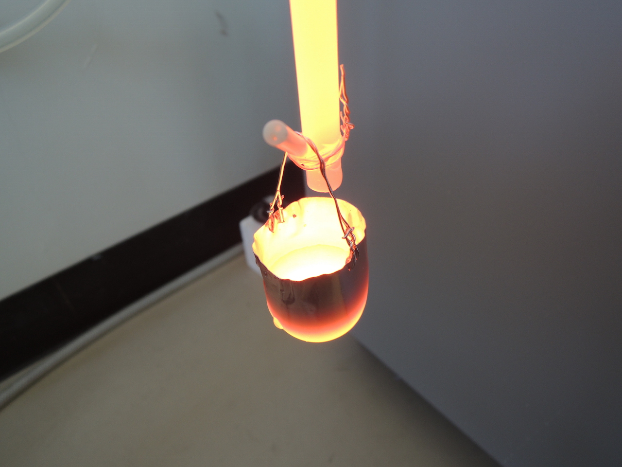 ガラス材料を1600℃で真空溶融したのち,取り出して空冷している様子です.