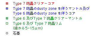 Type 1, 4, 5, 6, 7の斜長石斑晶が存在する.