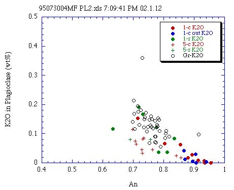 カンラン石,輝石鉱斑晶に包有される斜長石のAn-K2O量†