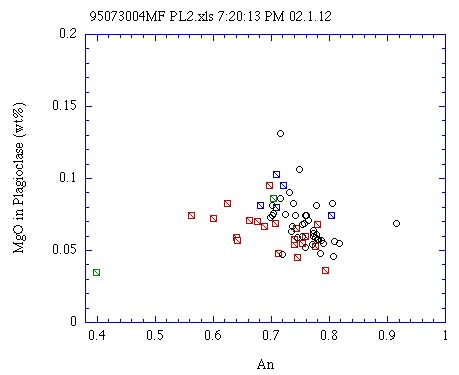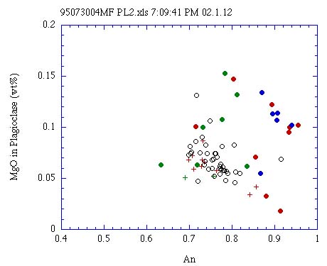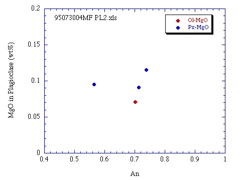 カンラン石,輝石斑晶に包有される斜長石のAn-MgO量†