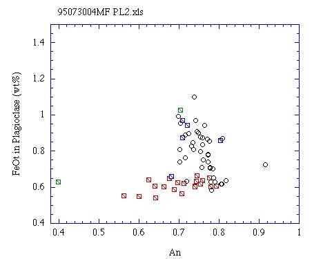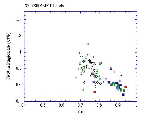 斜長石 Type 6,7 斑晶と石基のAn-FeOt量†