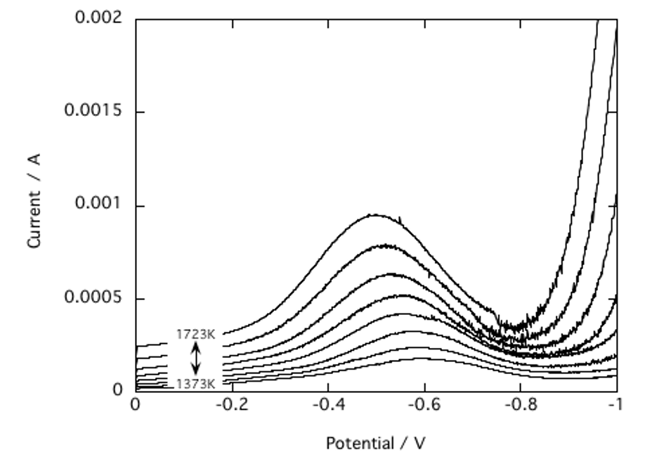 ボルタンメトリー法は,高温の"その場"でメルト中の微量成分の還元挙動を定量的に検出することができる利点があります.