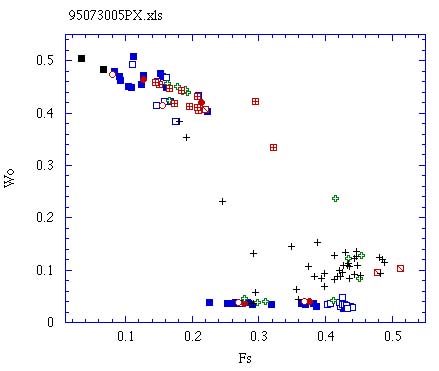 薬師岳溶岩(95081502)の輝石のFs-Wo量†