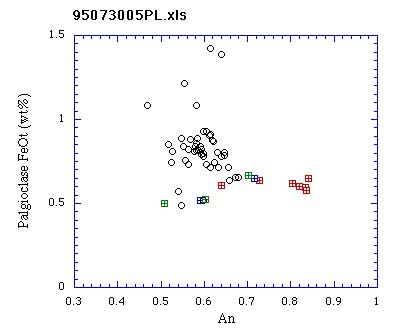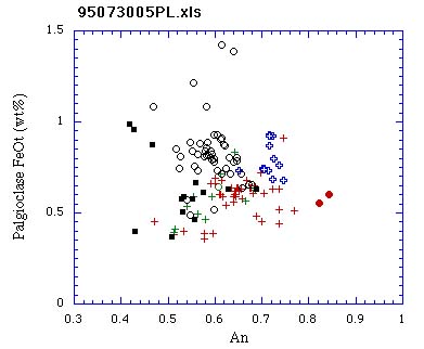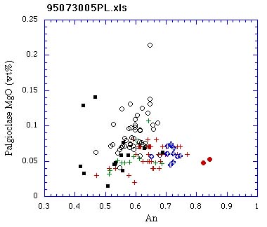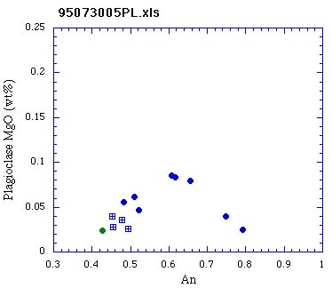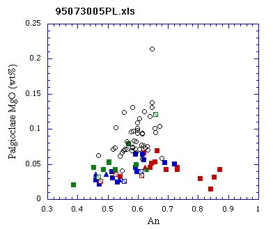 輝石,磁鉄鉱斑晶に包有される斜長石のAn-MgO量†