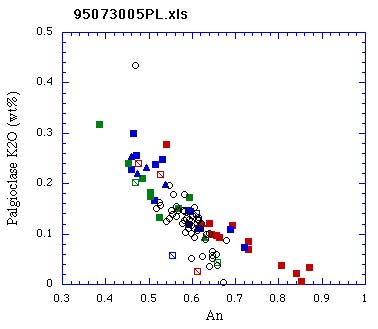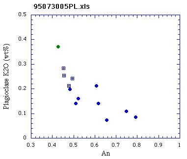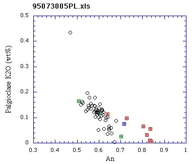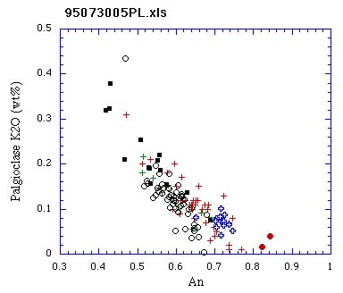 輝石,磁鉄鉱斑晶に包有される斜長石のAn-K2O量†