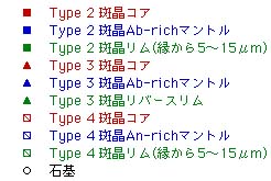 斜長石 Type 2, 3, 4 斑晶と石基のAn-MgO量†