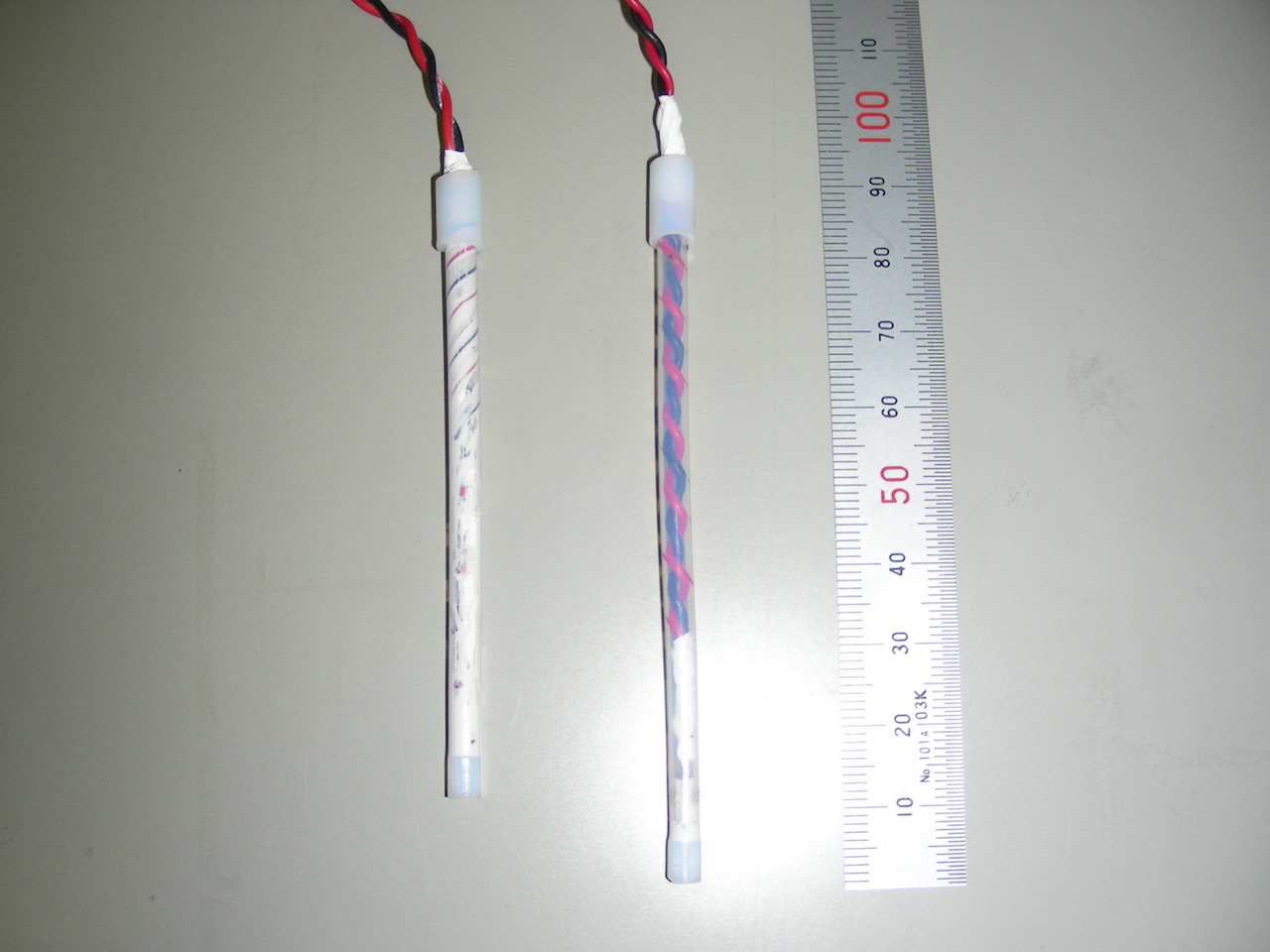 測温サーミスタ(左)と発熱用ヒーター(右)